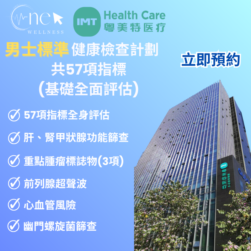 定位:性價比高、全面基礎的入門全身檢查,專為注重健康起點的男士而設。